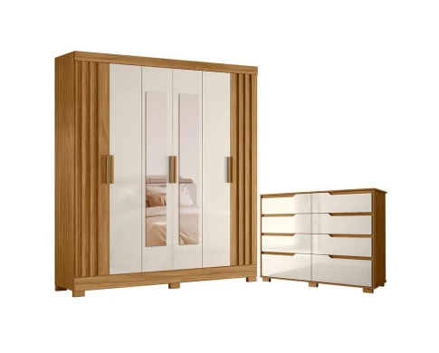 Guarda Roupa Casal Valença com Espelho e Cômoda Georgia Freijó Off White – Moval