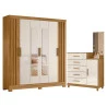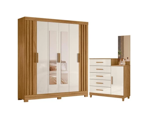 Guarda Roupa Casal Valença com Espelho e Cômoda Lisboa Freijó Off White – Moval