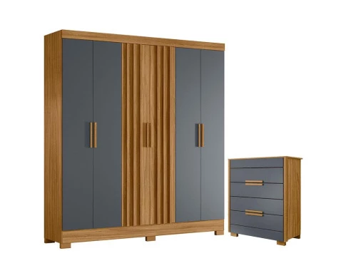 Guarda Roupa Casal Valença e Cômoda Dhara Freijó Cinza – Moval