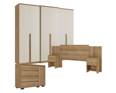 Guarda Roupa Casal Valência Capuccino Off White com Cômoda com Porta Aurora e Cabeceira Formosa Cappuccino - THB