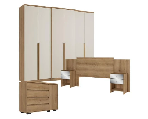 Guarda Roupa Casal Valência Capuccino Off White com Cômoda com Porta Aurora e Cabeceira Formosa Glass Cappuccino - THB
