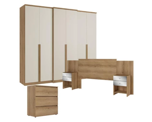 Guarda Roupa Casal Valência 6 Portas Capuccino Off White com Cômoda Gaveteiro Condessa e Cabeceira Formosa Glass Cappuccino - THB