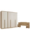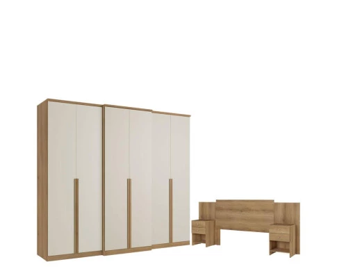 Guarda Roupa Casal Valência 6 Portas Capuccino Off White e Cabeceira com Mesas de Cabeceira Formosa Capuccino- THB