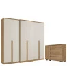 Guarda Roupa Casal Valência 6 Portas Capuccino Off White e Cômoda com Porta Aurora Acetinado - THB