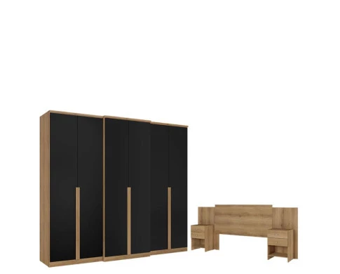 Conjunto perfeito para deixar seu quarto elegante e funcional! Transforme seu quarto com estilo e praticidade! O Guarda-Roupa Casal Valência 6 Portas Preto Acetinado oferece amplo espaço interno, organização e um design moderno. Combinado à Cabeceira Casal Formosa com Mesas de Cabeceira integradas em Capuccino, você garante charme, funcionalidade e mais conforto no ambiente. Perfeito para um quarto elegante, completo e harmonioso! Juntos, esses móveis criam um quarto completo, moderno e funcional — perfeito para quem busca beleza, organização e conforto em um único conjunto. Confira e aproveite já!