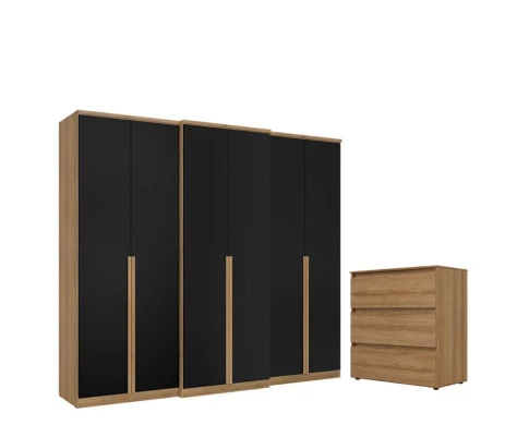 Guarda Roupa Casal Valência 6 Portas Capuccino Preto e Cômoda Gaveteiro Condessa Acetinado - THB