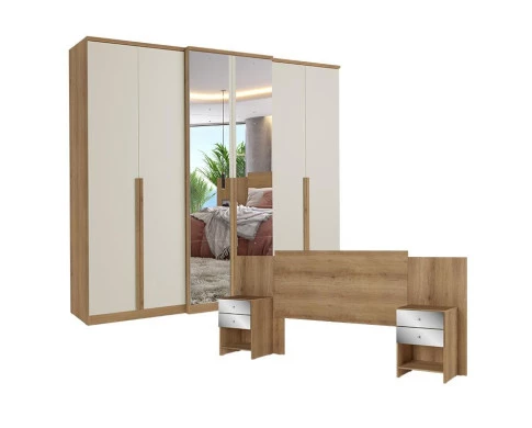 Guarda Roupa Casal Valência 6 Portas Full Glass Capuccino Off White com Cabeceira Formosa Glass Capuccino - THB