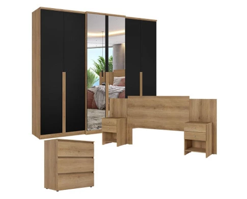 Guarda Roupa Casal Valência 6 Portas Full Glass Capuccino Preto com Cômoda Gaveteiro Condessa e Cabeceira Formosa Capuccino - THB