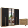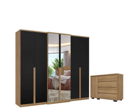 Guarda Roupa Casal Valência 6 Portas Full Glass Capuccino Preto e Cômoda com Porta Aurora Acetinado - THB