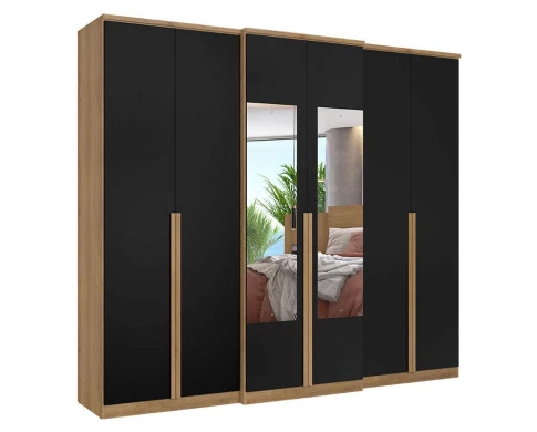 O Guarda Roupa Casal Valência 6 Portas Glass Capuccino Preto Acetinado - THB combina sofisticação, espaço e design moderno em um único móvel. Seu acabamento elegante em Capuccino com Preto Acetinado e as portas com espelho trazem um toque refinado que valoriza qualquer quarto. Composto por 6 portas bem distribuídas e gavetas funcionais, oferece excelente organização para roupas, calçados e acessórios. Seu amplo espaço interno conta com prateleiras, cabideiros e nichos que garantem praticidade no dia a dia e mantêm tudo sempre ao alcance.