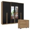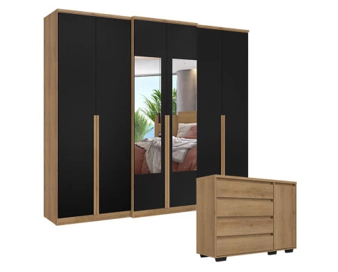 Guarda Roupa Casal Valência 6 Portas Glass Capuccino Preto com Cômoda com Porta Aurora Capuccino Acetinado - THB
