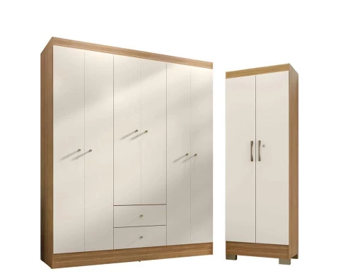 Guarda Roupa Solteiro Versa com 6 Portas Freijó Off White Fosco - Kits Paraná