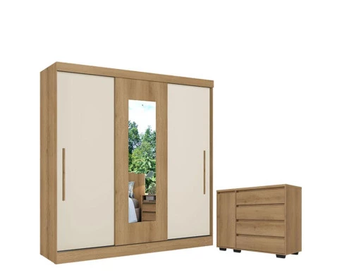 Apresentamos o Guarda-Roupa Casal Vision Glass 3 Portas Capuccino Cacau Off White Flex Acetinado junto com a Cômoda Gaveteiro Condessa Cappuccino – THB, o conjunto perfeito para quem busca beleza, funcionalidade e qualidade em um só ambiente.Com design moderno e sofisticado, o Vision Glass possui 3 portas de correr, sendo uma com detalhe em vidro espelhado, que amplia o ambiente e adiciona um toque de elegância. A Cômoda Aurora complementa o conjunto com linhas modernas e acabamento em Cappuccino, oferecendo amplas gavetas para guardar roupas e acessórios com praticidade.