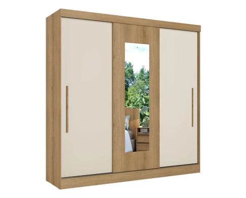 Guarda Roupa Casal Vision Glass 3 Portas Capuccino Cacau Off White Flex Acetinado - THB
