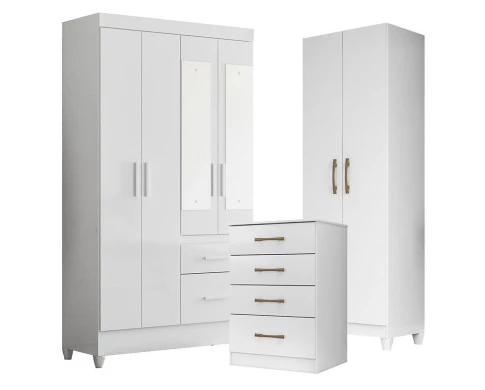 Guarda Roupa com Espelho Infantil Madri com Cômoda MS913 e Armário Multiuso New Íris Branco Brilho – Moval
