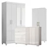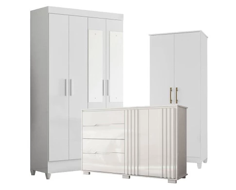 Guarda Roupa com Espelho Infantil Madri com Cômoda Texas e Multiuso Jade Branco Brilho – Moval