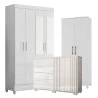 Guarda Roupa com Espelho Infantil Sobral com Cômoda Texas e Armário Multiuso Jade Branco Brilho – Moval
