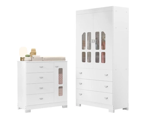 Guarda Roupa e Cômoda Infantil New Katatau Branco Acetinado – Reller