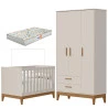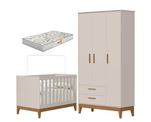 Guarda Roupa Infantil 3 Portas com Berço Americano Flip Areia Acetinado com Colchão Gazin - Reller