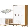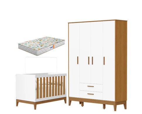 Guarda Roupa Infantil 4 Portas com Berço Americano Flip Branco Acetinado Savana com Colchão Gazin - Reller