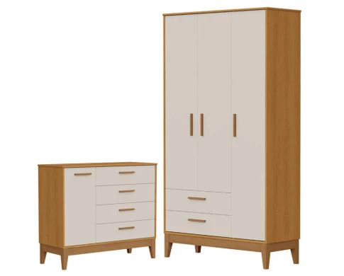 O Conjunto Infantil Flip da Reller une praticidade, organização e design moderno para o quarto do bebê ou da criança. Com acabamento em Areia acetinado Savana , o conjunto é elegante, versátil e combina facilmente com diferentes estilos de decoração. Guarda-Roupa Infantil Flip 3 Portas projetado para manter tudo sempre no lugar, conta com cabideiro metálico para pendurar roupas, nichos internos que facilitam a organização e puxadores em MDF revestido que trazem um toque de sofisticação .Cômoda Infantil Sapateira Flip com gavetas amplas e funcionais, a cômoda é ideal para guardar roupinhas, acessórios e objetos do dia a dia. As corrediças telescópicas proporcionam abertura suave e silenciosa, enquanto os pés em madeira reforçam a estabilidade do móvel. Desenvolvido pela Reller com toda qualida de para você.