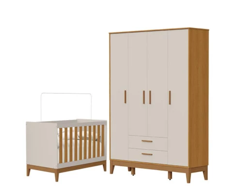 Guarda Roupa Infantil Flip 4 Portas com Berço Americano Flip Areia Acetinado Savana - Reller