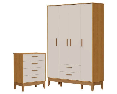 Guarda Roupa Infantil Flip 4 Portas com Cômoda Gaveteiro Infantil Flip Areia Acetinado Savana - Reller