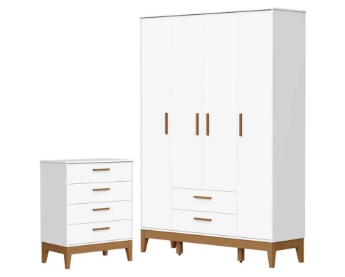 Guarda Roupa Infantil Flip 4 Portas com Cômoda Gaveteiro Infantil Flip Branco Acetinado - Reller