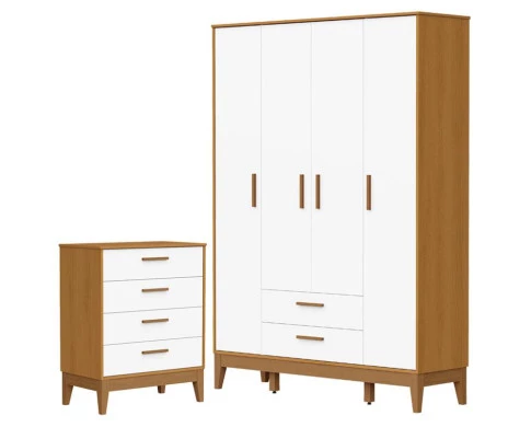 Guarda Roupa Infantil Flip 4 Portas com Cômoda Gaveteiro Infantil Flip Branco Acetinado Savana - Reller