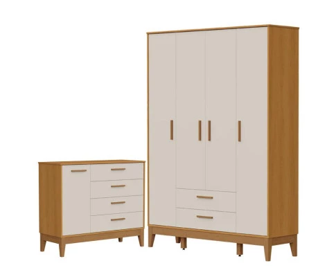 Guarda Roupa Infantil Flip 4 Portas com Cômoda Sapateira Infantil Flip Areia Acetinado Savana - Reller