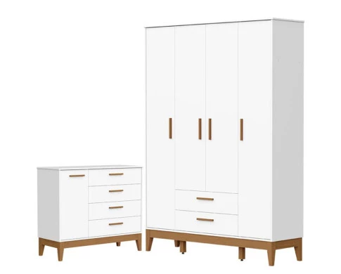 Guarda Roupa Infantil Flip 4 Portas com Cômoda Sapateira Infantil Flip Branco Acetinado - Reller