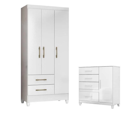 Guarda Roupa Infantil Lima e Cômoda Vênus com Pés Branco Flex – Moval