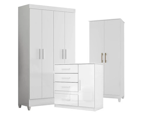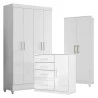 Guarda Roupa Infantil Madri com Cômoda Vênus e Armário Multiuso Jade Branco Brilho – Moval