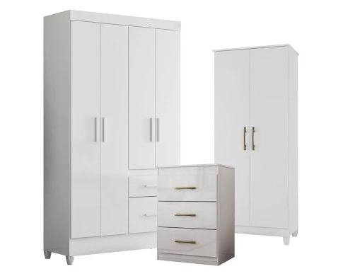 Guarda Roupa Infantil Madri com Cômoda Vitória e Armário Multiuso Jade Branco Brilho – Moval