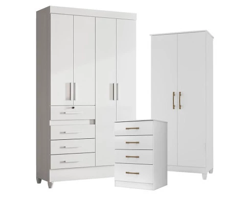 Guarda Roupa Infantil Sobral com Cômoda MS913 e Armário Multiuso Jade Branco Brilho – Moval