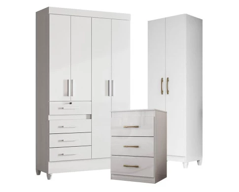 Guarda Roupa Infantil Sobral com Cômoda Vitória e Armário Multiuso New Íris Branco Brilho – Moval