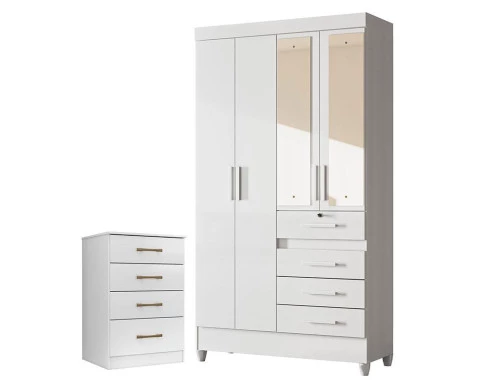 Guarda Roupa Infantil Sobral com Espelho e Cômoda MS913 Branco Brilho – Moval