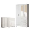 Guarda Roupa Infantil Sobral com Espelho e Cômoda Texas Branco Brilho – Moval