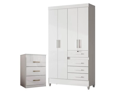 Guarda Roupa Infantil Sobral e Cômoda Vitória Branco Brilho – Moval