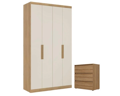 Já pensou ter essa junção de móveis no seu quarto Guarda Roupa Soleiro Milan 4 Portas e Cômoda com Porta Aurora, o Guarda Roupa com 4 portas bem distribuídas, ele oferece ótimo aproveitamento interno, com prateleiras espaçosas, cabideiro resistente e nichos funcionais que permitem guardar roupas, acessórios e objetos pessoais, e aCômoda Gaveteiro Condessa conta com gavetas amplas e uma porta lateral, ideais para manter roupas, acessórios e objetos pessoais sempre bem organizados. Sua estrutura robusta garante resistência e durabilidade desenvolvido pela THB com toda qualidade para você cliente.