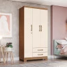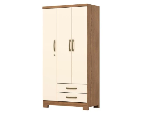 Guarda Roupa Solteiro Açai 3 Portas 2 Gavetas com Chave Nature Off White - Henn