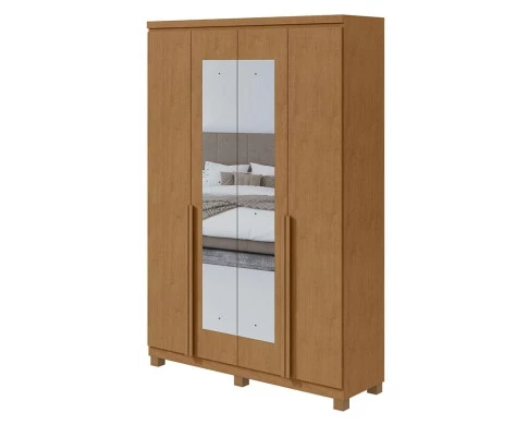 Guarda Roupa Solteiro Alonzo 4 Portas Amêndoa Clean com Espelho e Pés - Lopas