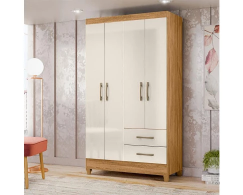 Guarda Roupa Solteiro Ambiente Chile 4 Portas Freijó Off White - Moval
