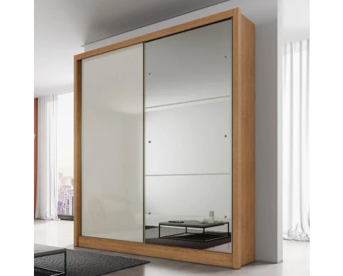 Guarda Roupa Solteiro Ambiente Dante 2 Portas Cumaru 25 Fendi com Espelho – Novo Horizonte