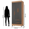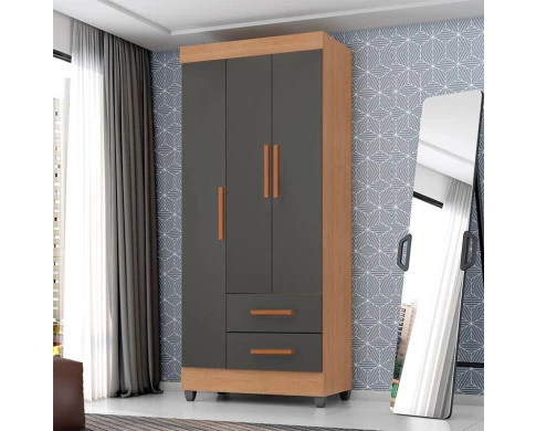 Guarda Roupa Solteiro Ambiente Lite 3 Portas Nature Cinza – Móveis Leão