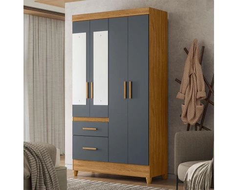 Guarda Roupa Solteiro Ambiente Madri 4 Portas Freijó Cinza com Espelho - Moval