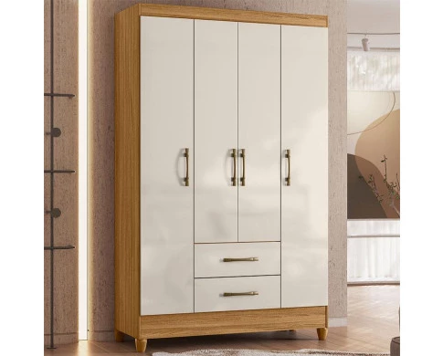 Guarda Roupa Solteiro Ambiente Paraty 4 Portas Freijó Off White - Moval