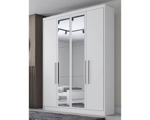 Guarda Roupa Solteiro Ambiente Sevilha 4 Portas 3 Gavetas Neve com Espelho – Novo Horizonte