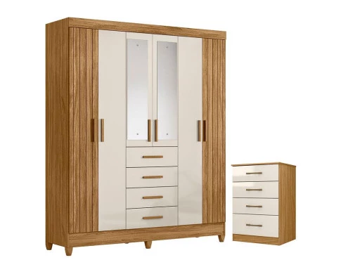 Guarda Roupa Solteiro Aruba com Espelho e Cômoda MS913 Freijó Off White – Moval