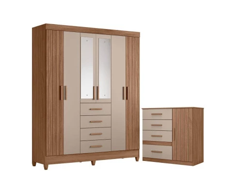 Guarda Roupa Solteiro Aruba com Espelho e Cômoda Vênus Carvalho Fendi – Moval